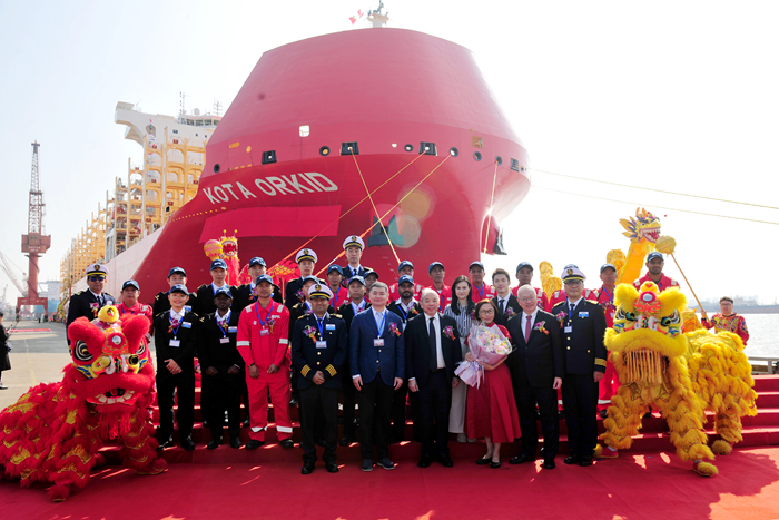 11月4日上午,我集團新揚子造船為新加坡太平船務(PIL)建造的第四艘8200TEU薄膜型LNG雙燃料集裝箱船“KOTAORKID”輪解纜離開船…